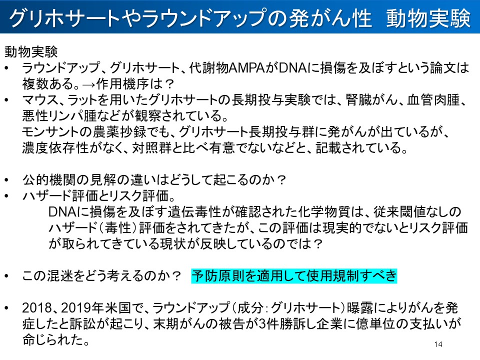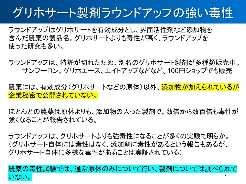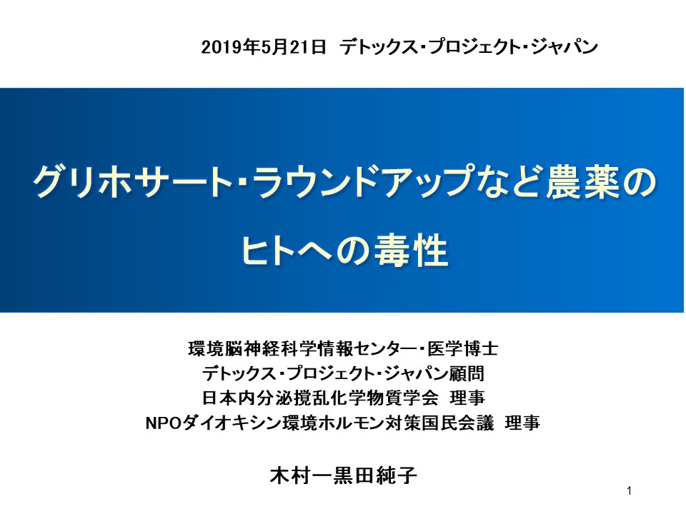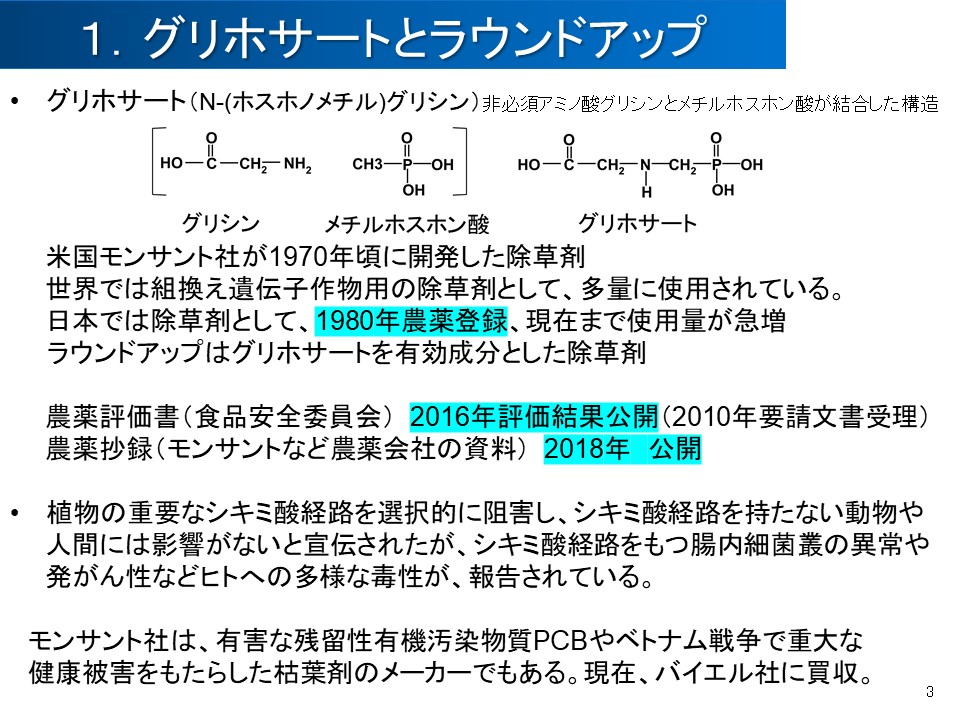 新たに分かってきたグリホサート・ラウンドアップの毒性 2019年5月21日講演会資料