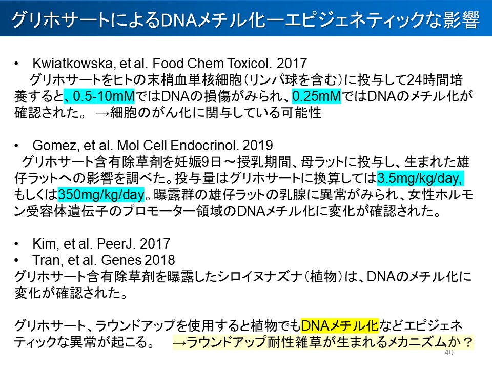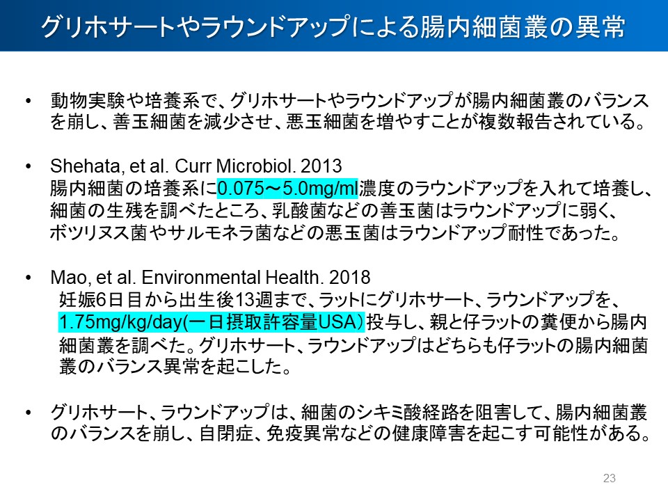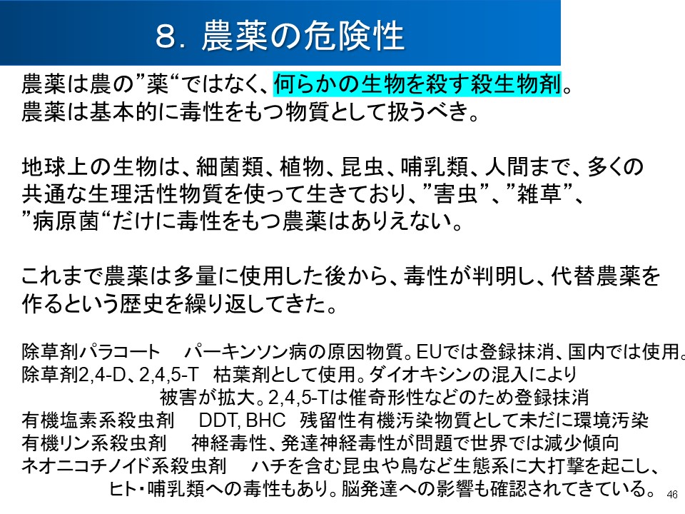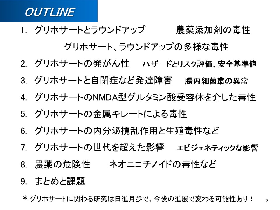 2年前から、また新たにグリホサートやネオニコの毒性に関する論文が出ており、それについて紹介しています。