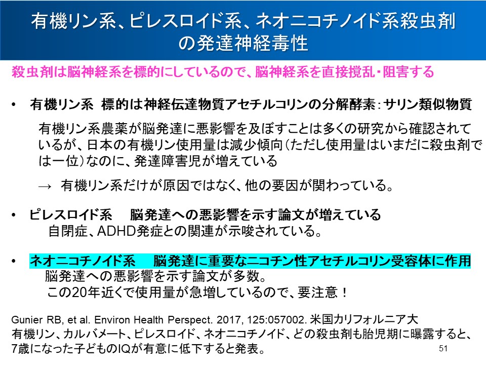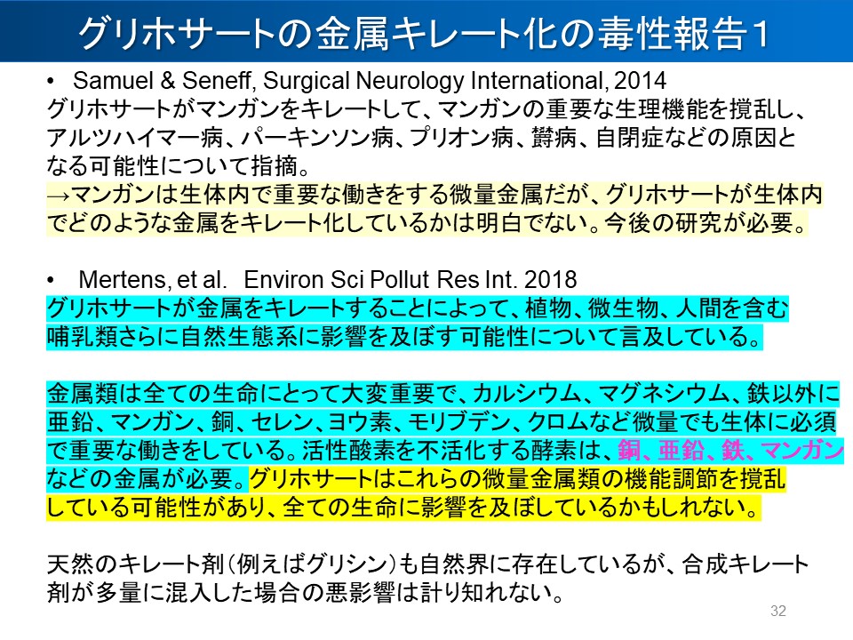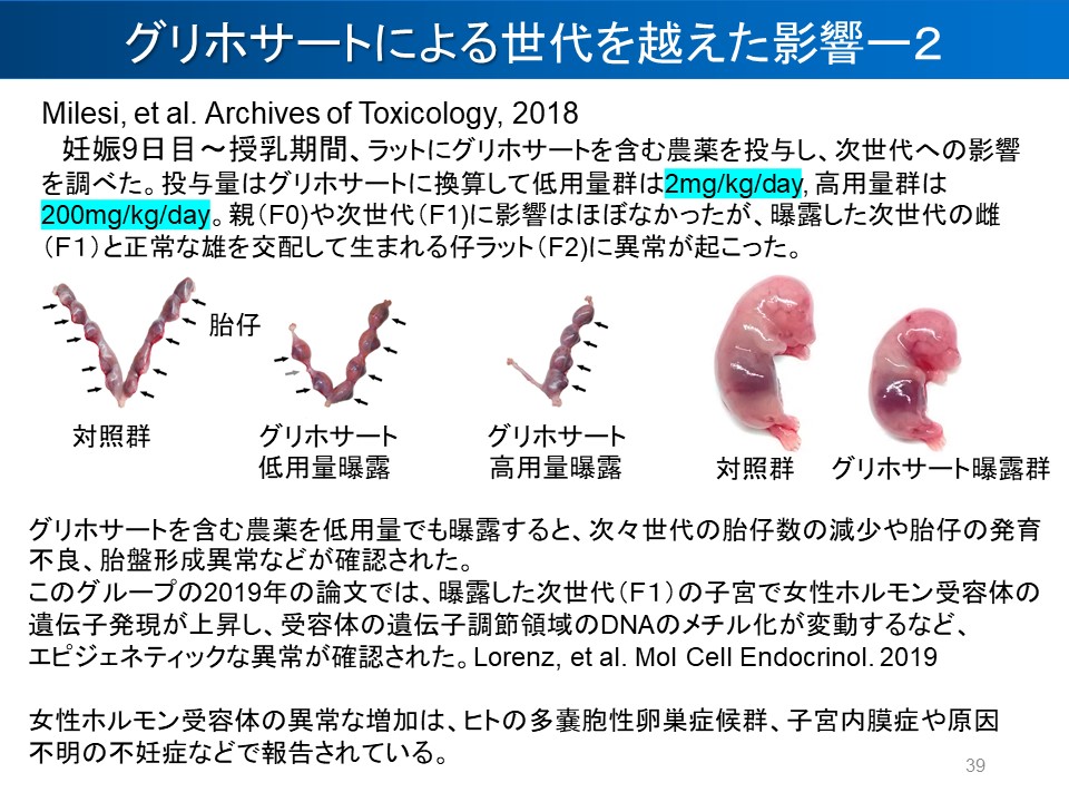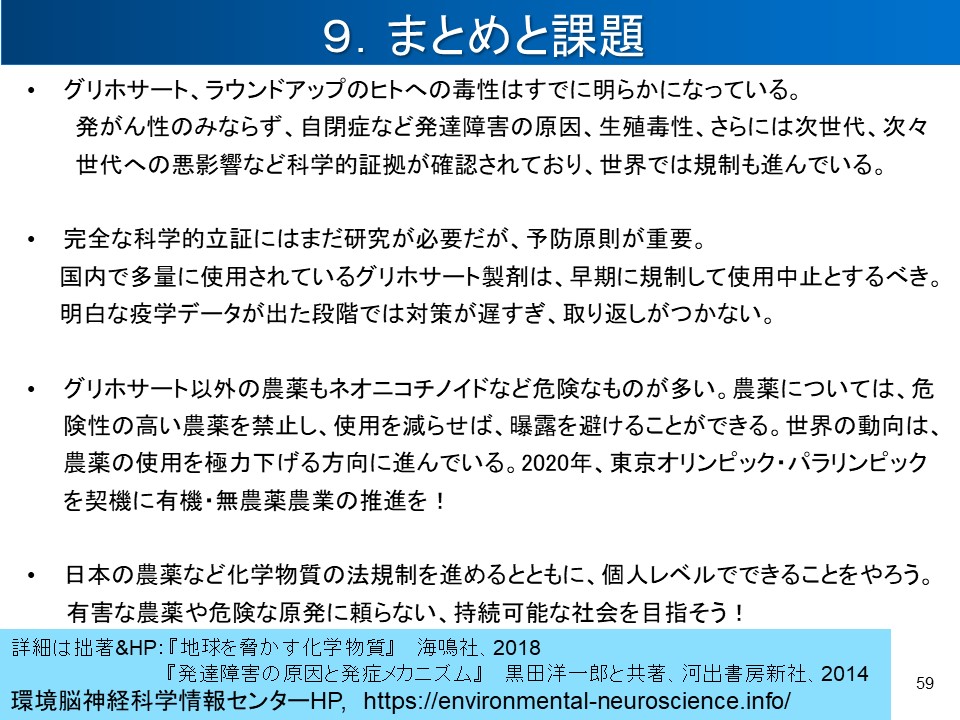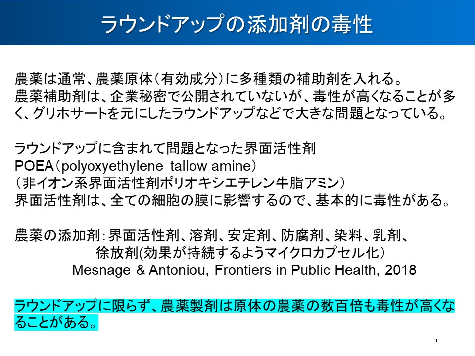 2年前から、また新たにグリホサートやネオニコの毒性に関する論文が出ており、それについて紹介しています。