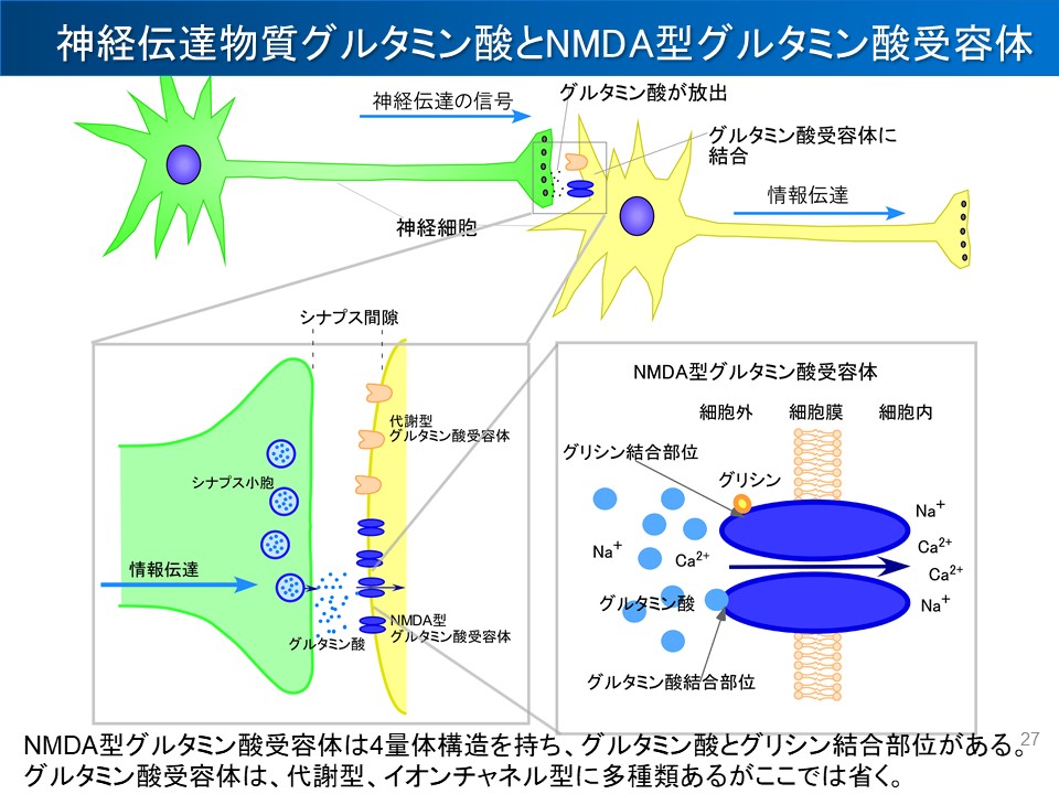 グリホサート、グルホシネートは除草剤ですが、図のように神経伝達物質グリシンとグルタミン酸によく似た構造を持っています。グリシンは私たち人間の脳神経系で重要な抑制性神経伝達物質で、グルタミン酸は重要な興奮性神経伝達物質です。