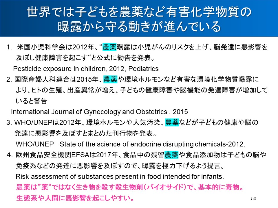 グリホサート、ネオニコチノイドなど農薬の人への毒性 農薬曝露が子どもの成長に及ぼす影