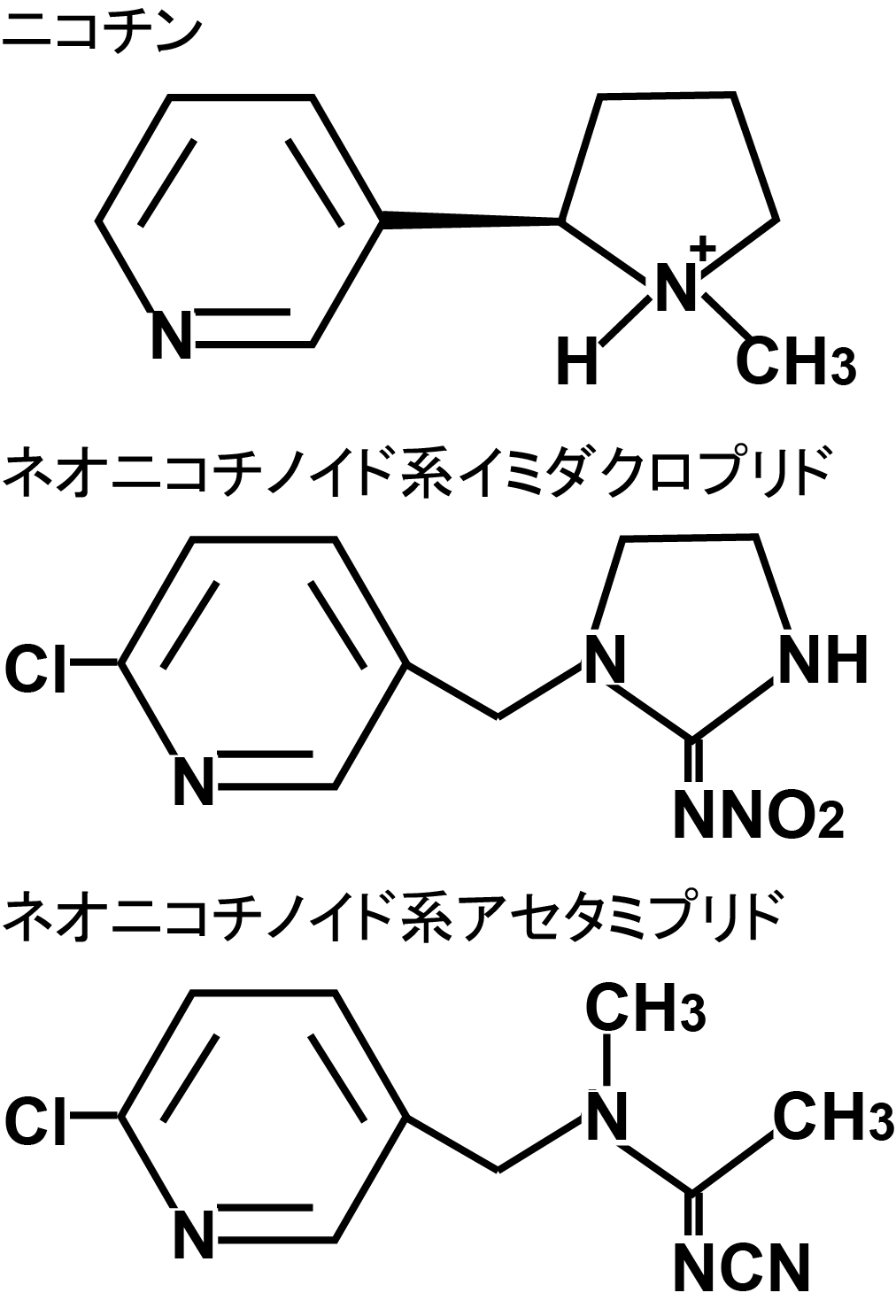 新しいニコチンという意味で、煙草に含まれる毒物ニコチンによく似た構造をしています。