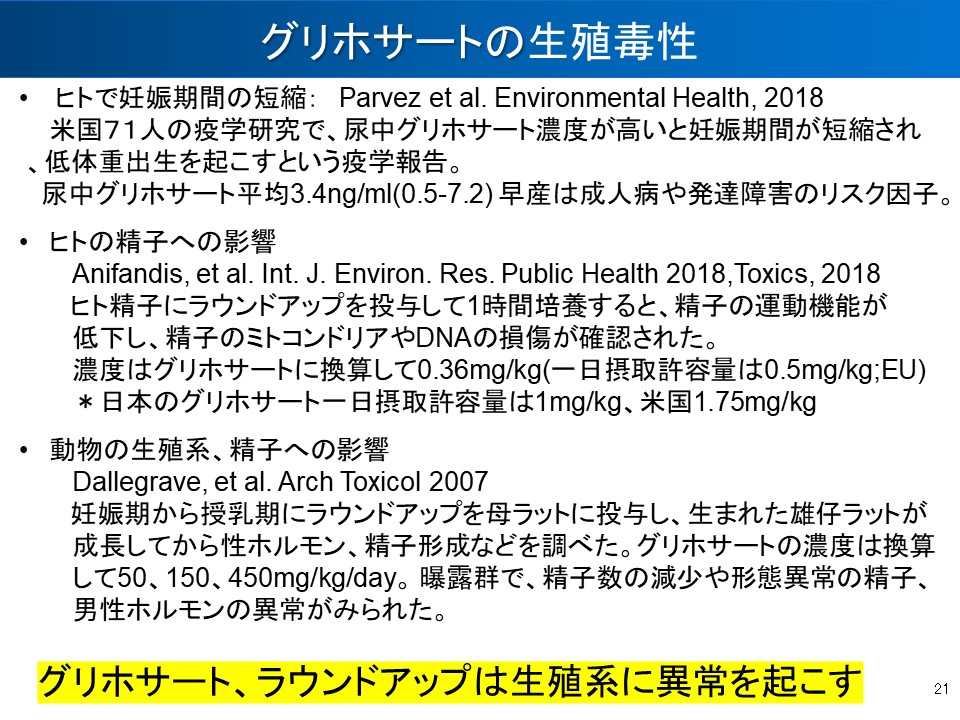 新たに分かってきたグリホサート・ラウンドアップの毒性 2019年5月21日講演会資料