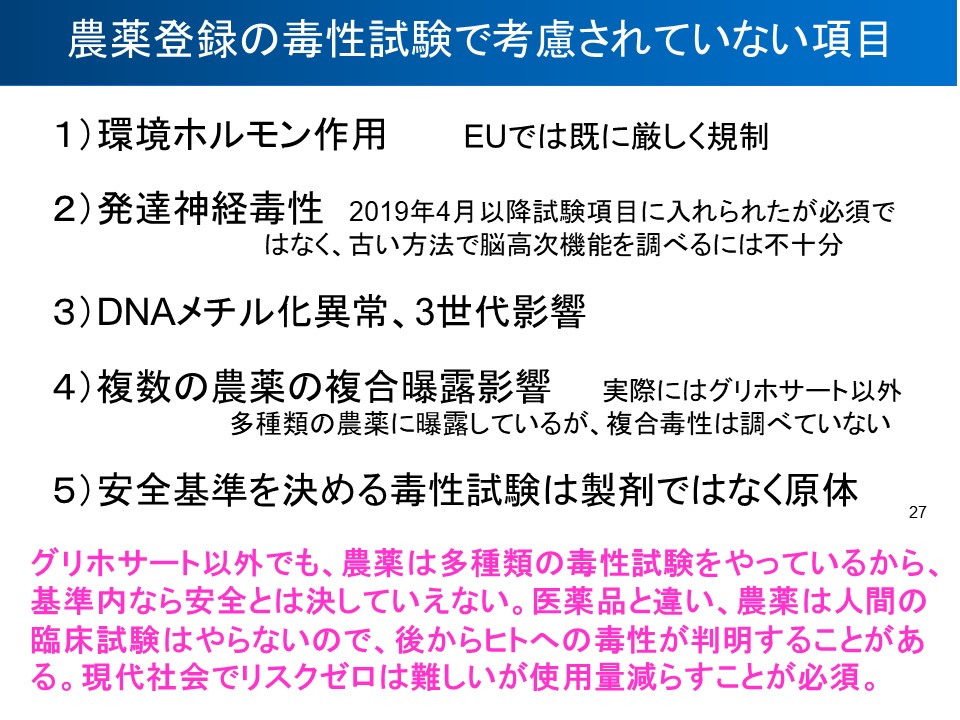 2年前から、また新たにグリホサートやネオニコの毒性に関する論文が出ており、それについて紹介しています。